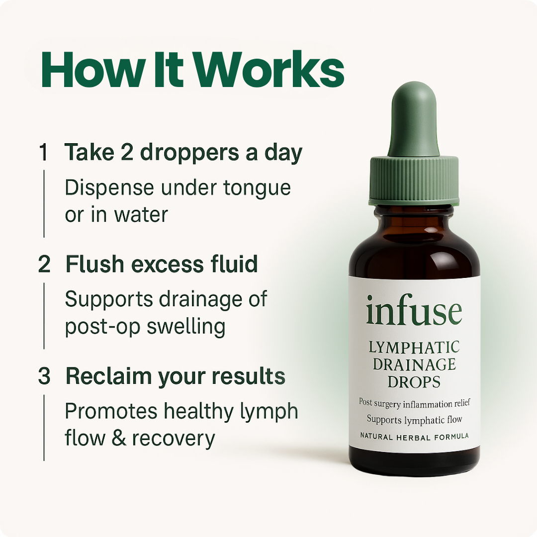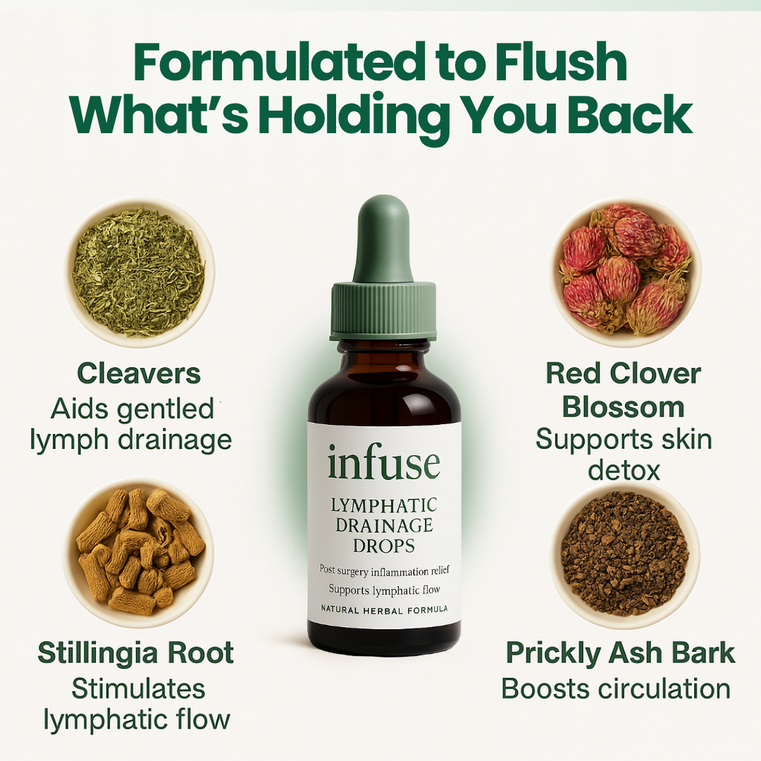 Using herbs like red root, cleavers, and burdock root, our drops support healthy lymph flow, detoxification through the kidneys and liver, and reduced inflammation, so your body can finally let go of what it doesn't need.